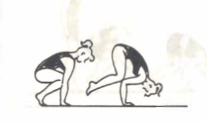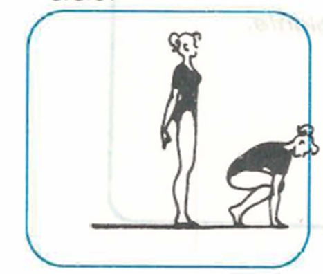 INICIE EN POSCICION DE PIE CON LAS PIERNAS JUNTASY EXTENDIDAS, PASE A CUCLILLAS, APOYE LAS MANOS CON LA PUNTA DE LOS DEDOS HACIA ADELANTE, BRAZOS EXTENDIDOS Y SEPARADOS AL ANCHO DE LOS HOMBROS.