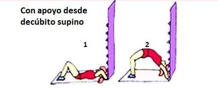 El puente se ejecuta tumbado boca arriba en el suelo, con las piernas flexionadas para buscar un buen apoyo de las plantas de los pies, ayudándonos con las manos apoyadas en el piso. El movimiento consiste en elevar la cadera con ello la parte inferior de la espalda del suelo, apoyándonos firmemente en las plantas de los pies y en la parte superior de la espalda y la cabeza para formar un arco o puente, de ahí su nombre. Si lo utilizamos como un medio de reforzar la musculatura posterior, buscaremos la contracción de los glúteos para elevar la cadera y notaremos como tonificamos esta zona muscular si lo hacemos con las suficientes repeticiones.